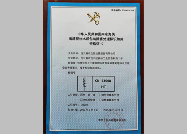 公司廠房占地20余畝,擁有專業(yè)機械設(shè)備30套,專業(yè)技術(shù)人員50余名。擁有一套現(xiàn)代化的能效高、效果好的熱處理窯,能較好的完成木材的干燥及有害生物的殺滅,已于2007年獲得出境木質(zhì)包裝標識加施資格,是連云港海關(guān)指定定點木包裝熱處理單位。經(jīng)我公司加工出口的木質(zhì)包裝年產(chǎn)量20萬套以上,產(chǎn)值1600萬余元。目前是連云港區(qū)域同行業(yè)規(guī)模及產(chǎn)能最大的專業(yè)生產(chǎn)廠家。